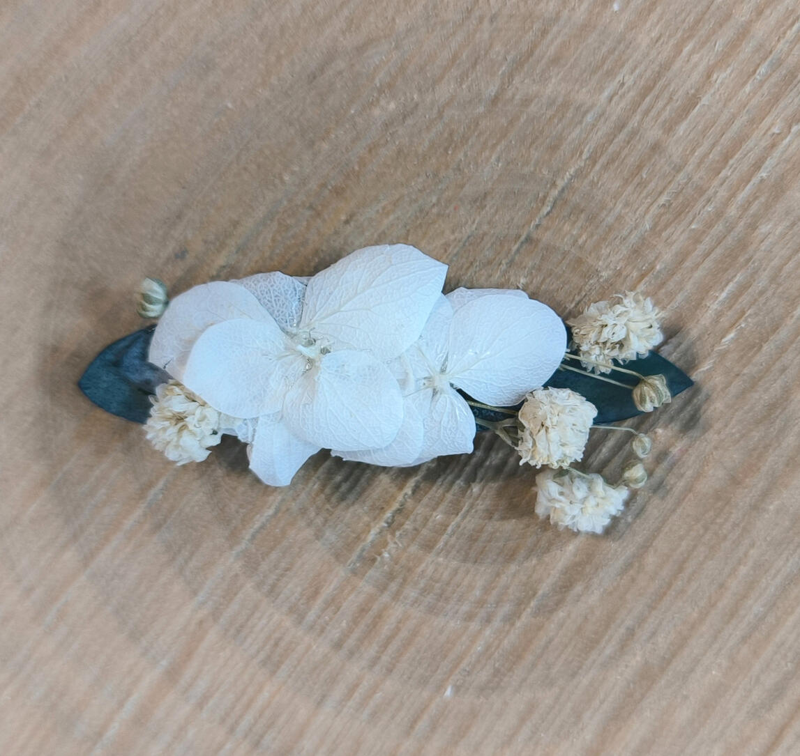 Accessoires incontournables, nos créations sont pensées pour sublimer chaque détail avec délicatesse, des peignes et barrettes (9 à 15 cm) aux indispensables boutonnières.Au-delà de nos modèles exclusifs, sachez que chaque couronne de notre collection peut être déclinée en peigne ou barrette assorti pour créer une parure parfaitement harmonieuse entre les mariés et leur cortège.Comme pour l'ensemble de nos collections, chaque pièce est unique, faite main en France, et entièrement personnalisable selon vos envies.Ainsi, tous nos modèles de couronnes peuvent être adaptés sur le support de votre choix à la demande.