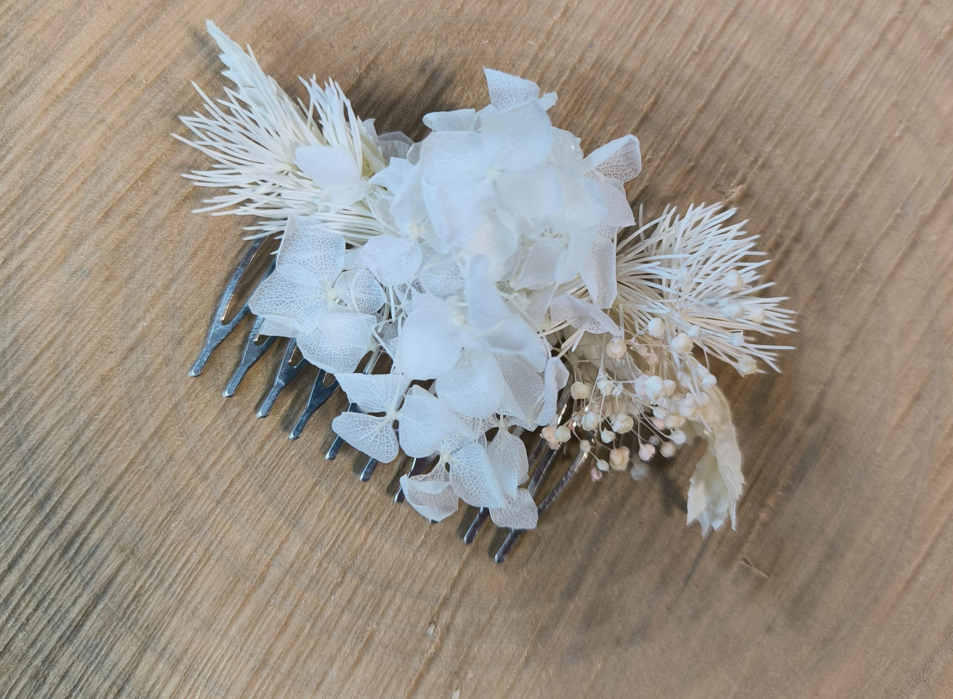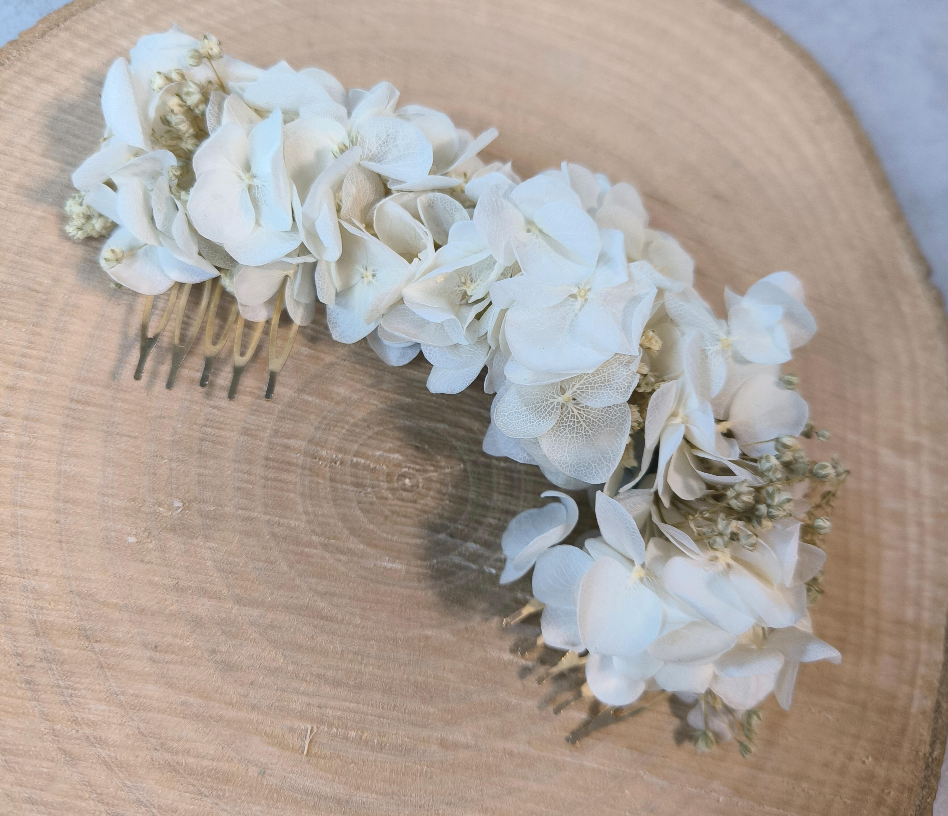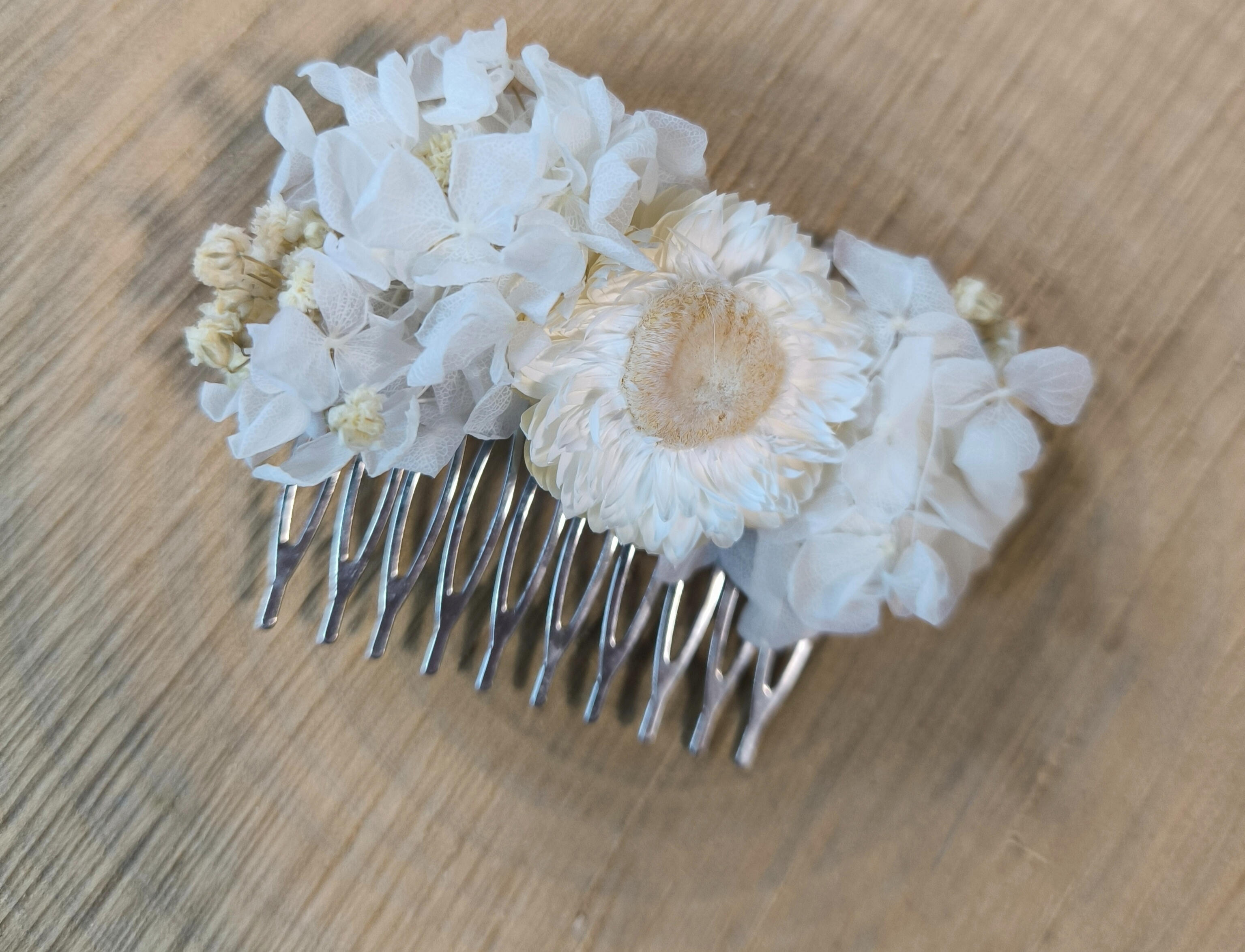 Bienvenue chez Les fleurs de Lili, votre créatrice d'accessoires de mariage en fleurs éternelles. Découvrez mes couronnes de fleurs séchées, peignes et bijoux de tête faits main en France pour sublimer vos cérémonies et shootings.