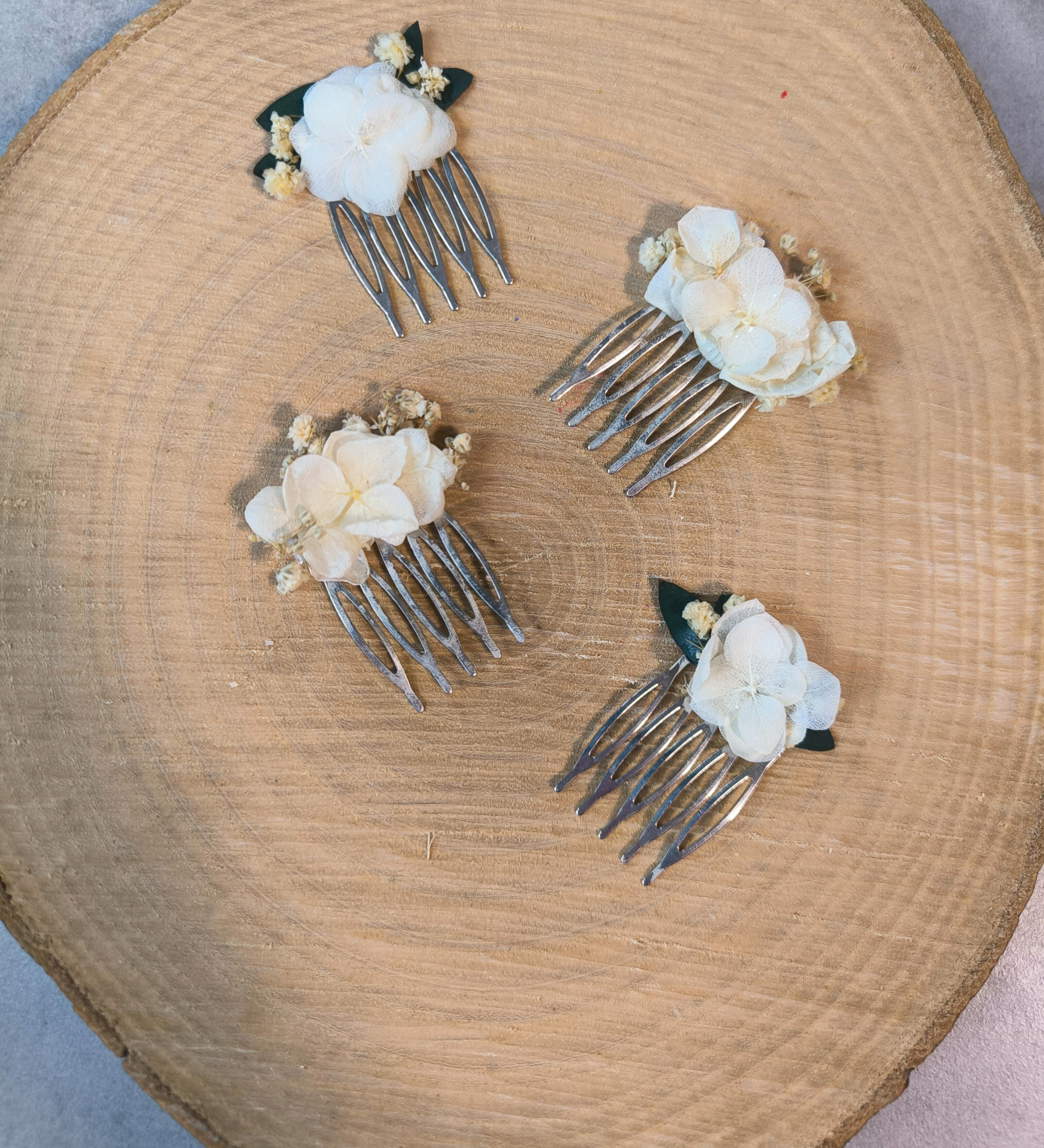 La délicatesse en petit format : nos peignes, épingles et petits accessoires.Pensés pour celles qui recherchent une touche fleurie tout en subtilité, ces petits accessoires sont les parfaits alliés des coiffures bohèmes ou des cortèges de demoiselles d’honneur.Véritables concentrés de notre savoir-faire français, ils se déclinent dans toutes les teintes de nos collections pour s'accorder parfaitement à votre parure principale ou à votre thème de mariage.