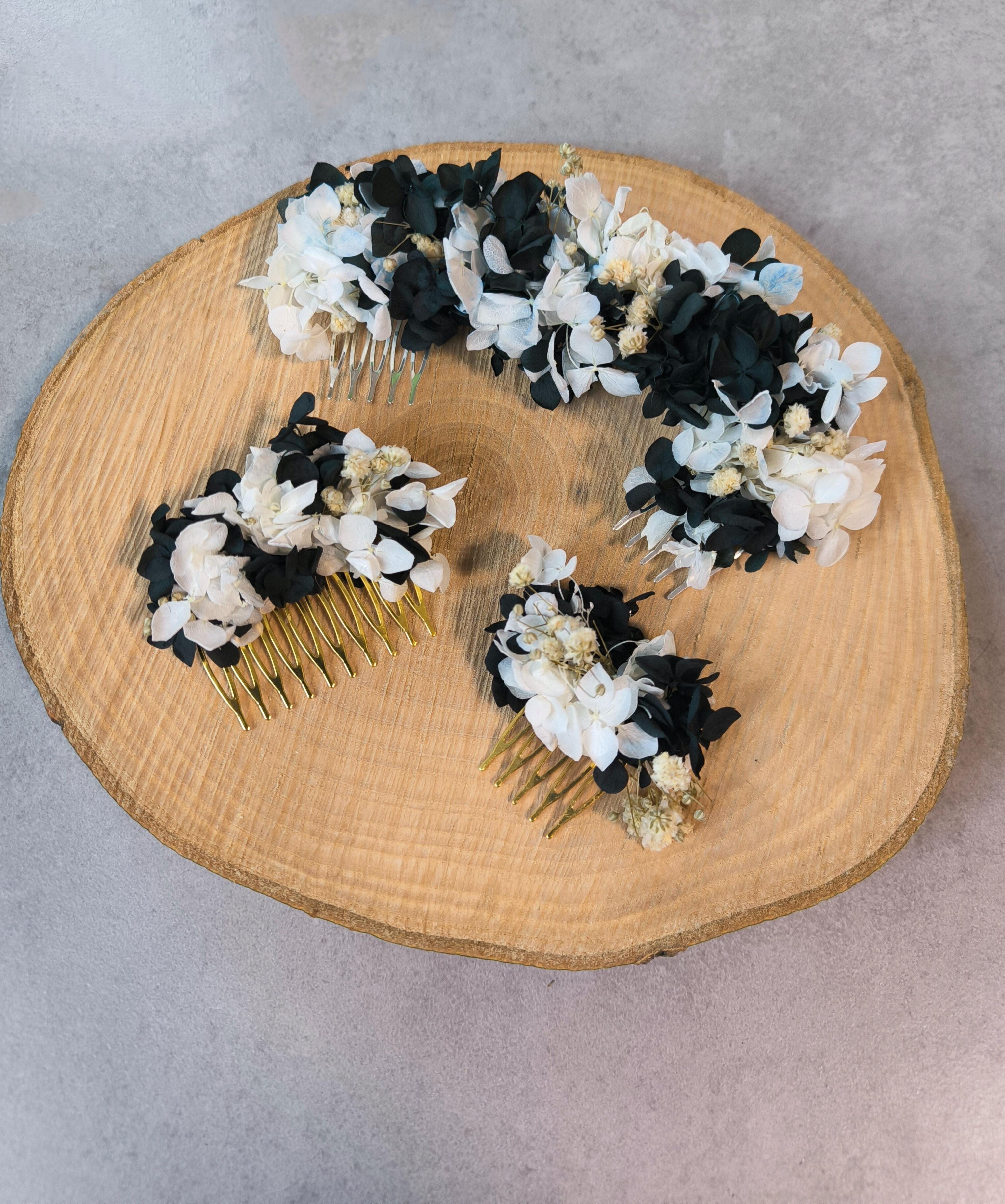 Accessoires incontournables, nos créations sont pensées pour sublimer chaque détail avec délicatesse, des peignes et barrettes (9 à 15 cm) aux indispensables boutonnières.Au-delà de nos modèles exclusifs, sachez que chaque couronne de notre collection peut être déclinée en peigne ou barrette assorti pour créer une parure parfaitement harmonieuse entre les mariés et leur cortège.Comme pour l'ensemble de nos collections, chaque pièce est unique, faite main en France, et entièrement personnalisable selon vos envies.Ainsi, tous nos modèles de couronnes peuvent être adaptés sur le support de votre choix à la demande.
