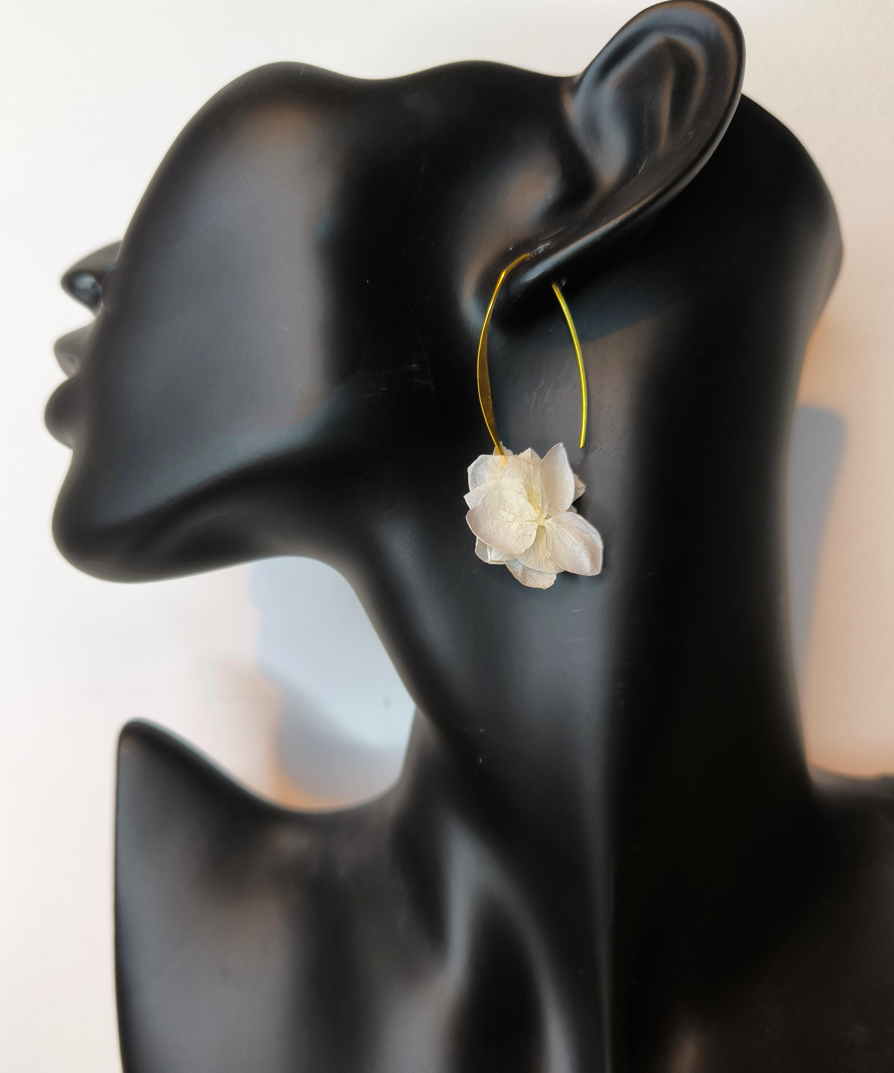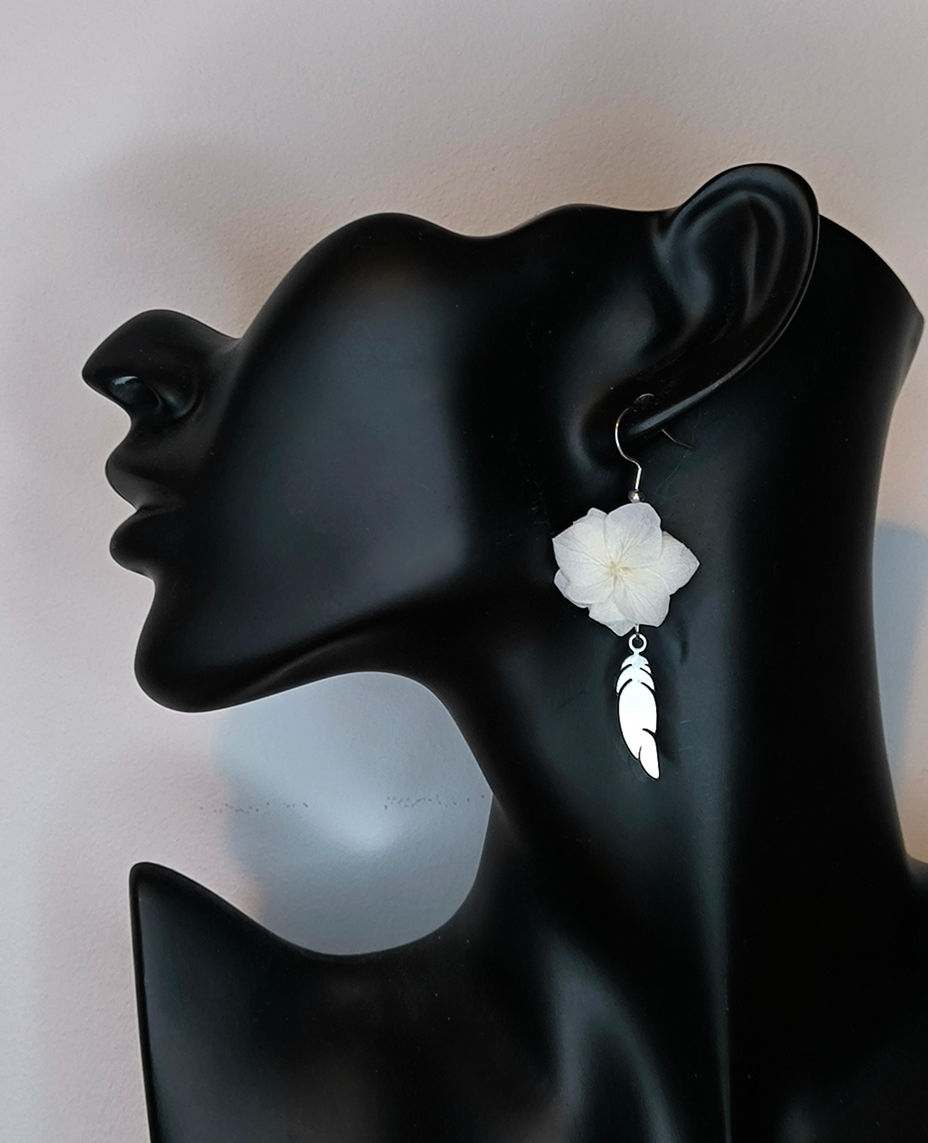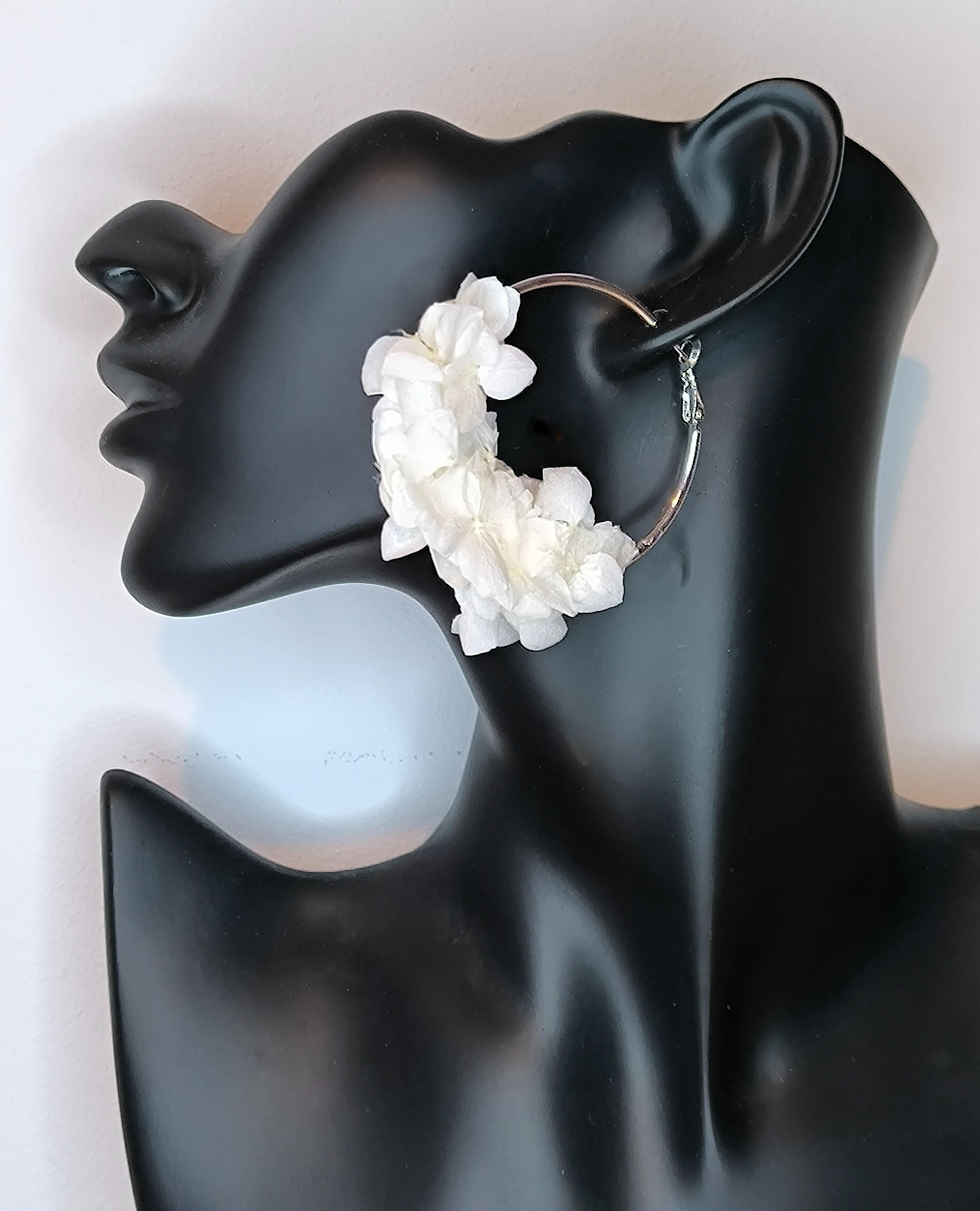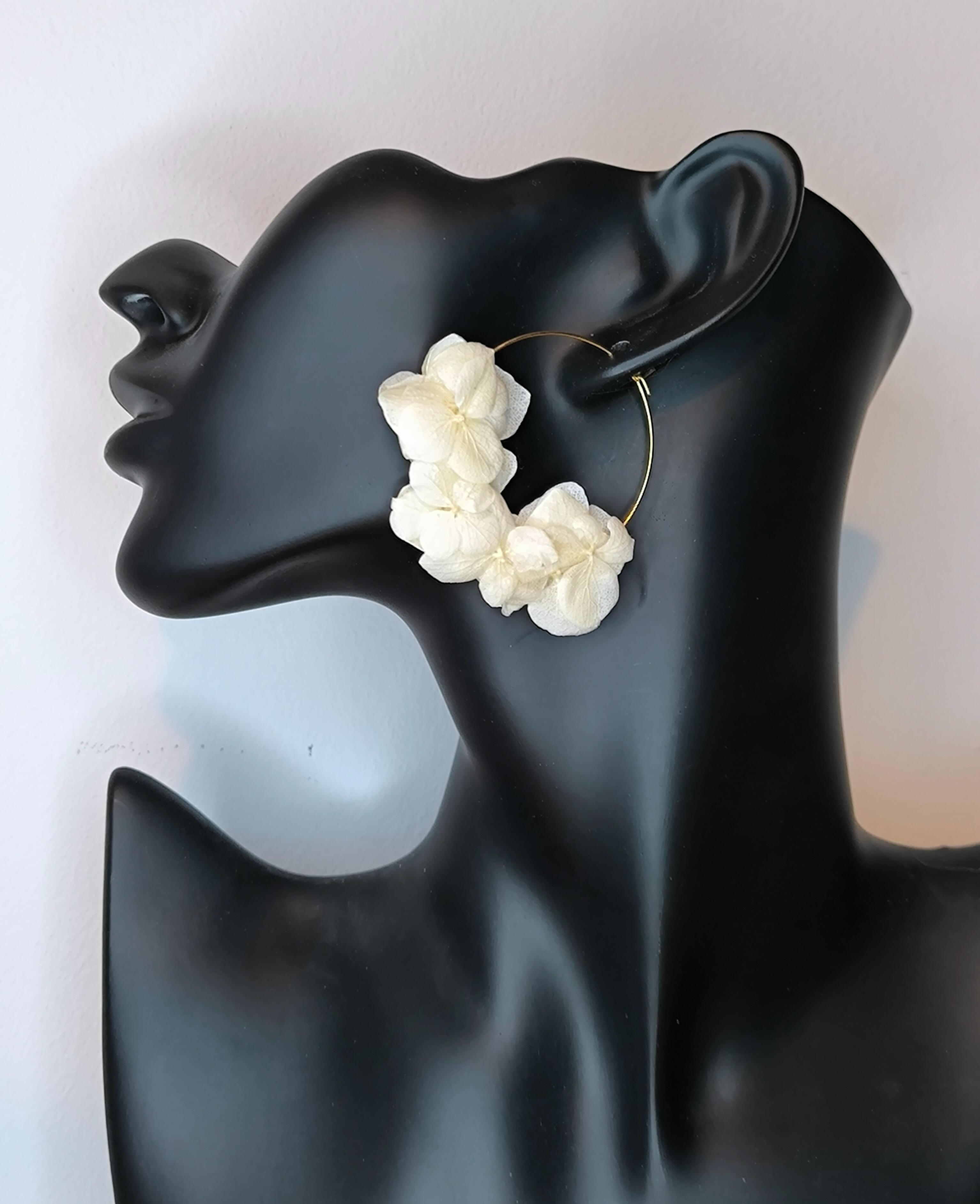 Sublimez votre visage avec nos boucles d'oreilles et colliers en fleurs éternelles. Véritables pièces artisanales, tous nos bijoux se déclinent dans les teintes de votre choix pour s'accorder parfaitement à votre bouquet ou à votre parure de tête.Chaque modèle est entièrement personnalisable : une harmonie unique créée à votre demande pour un cortège qui vous ressemble.