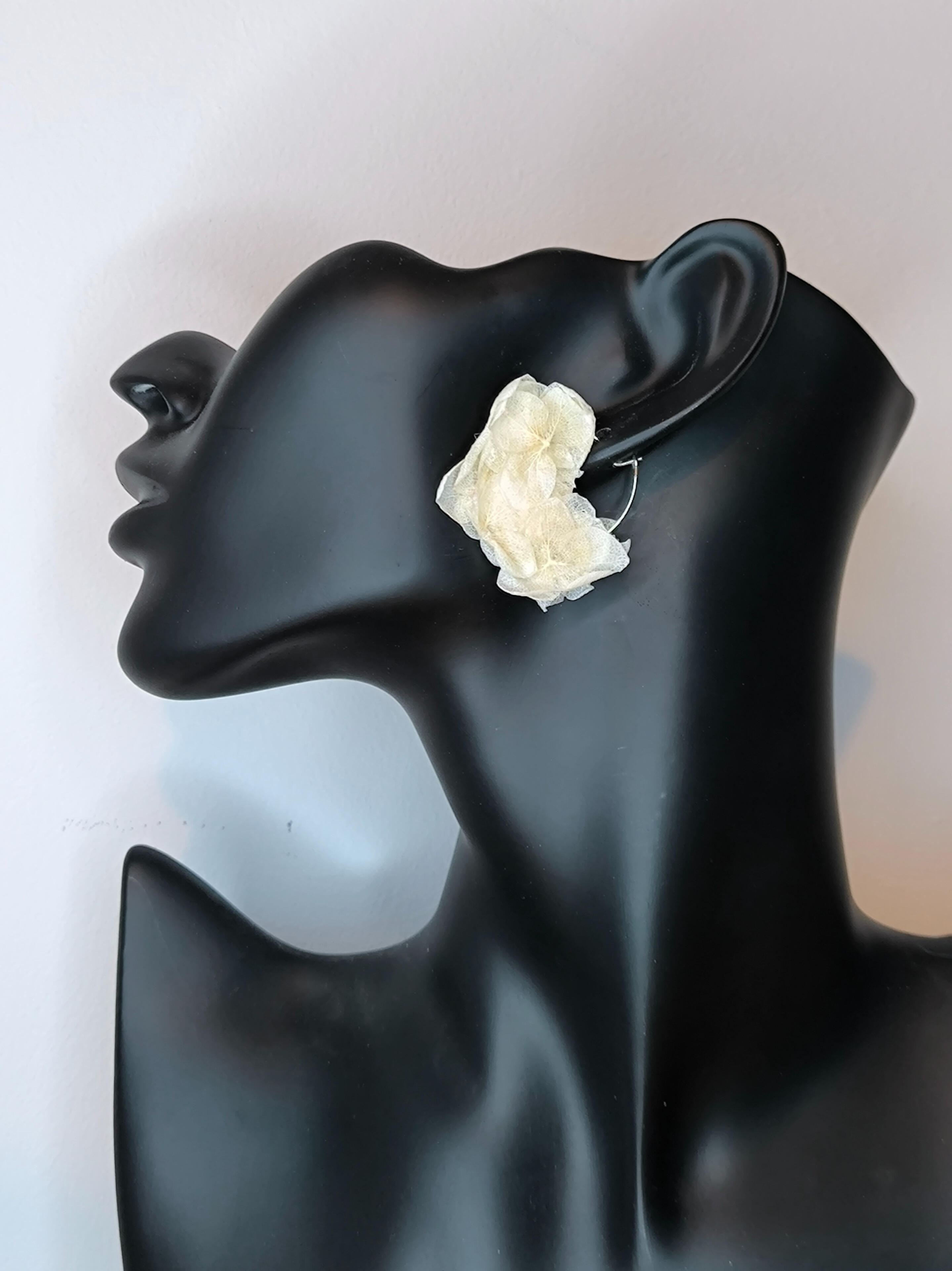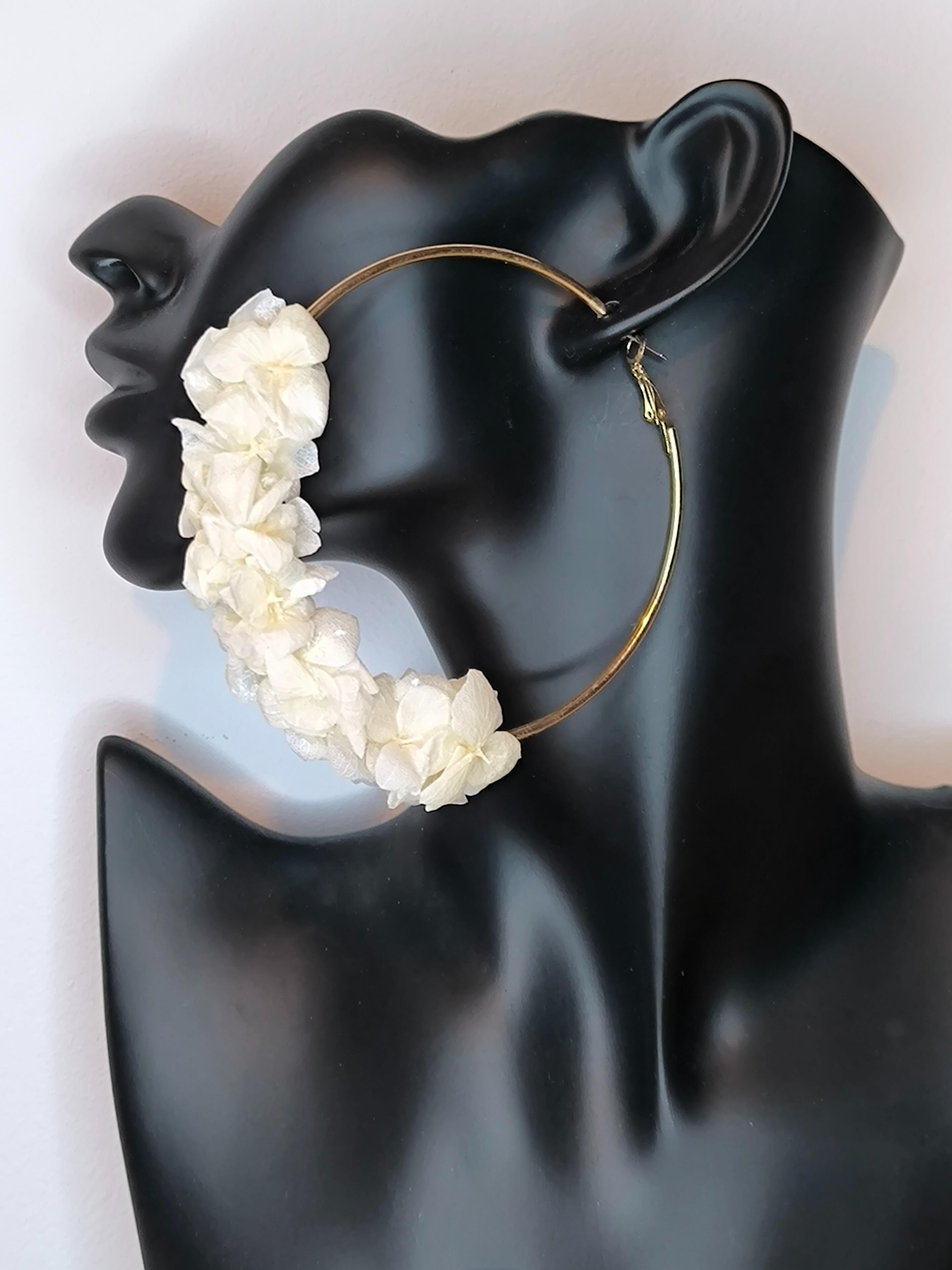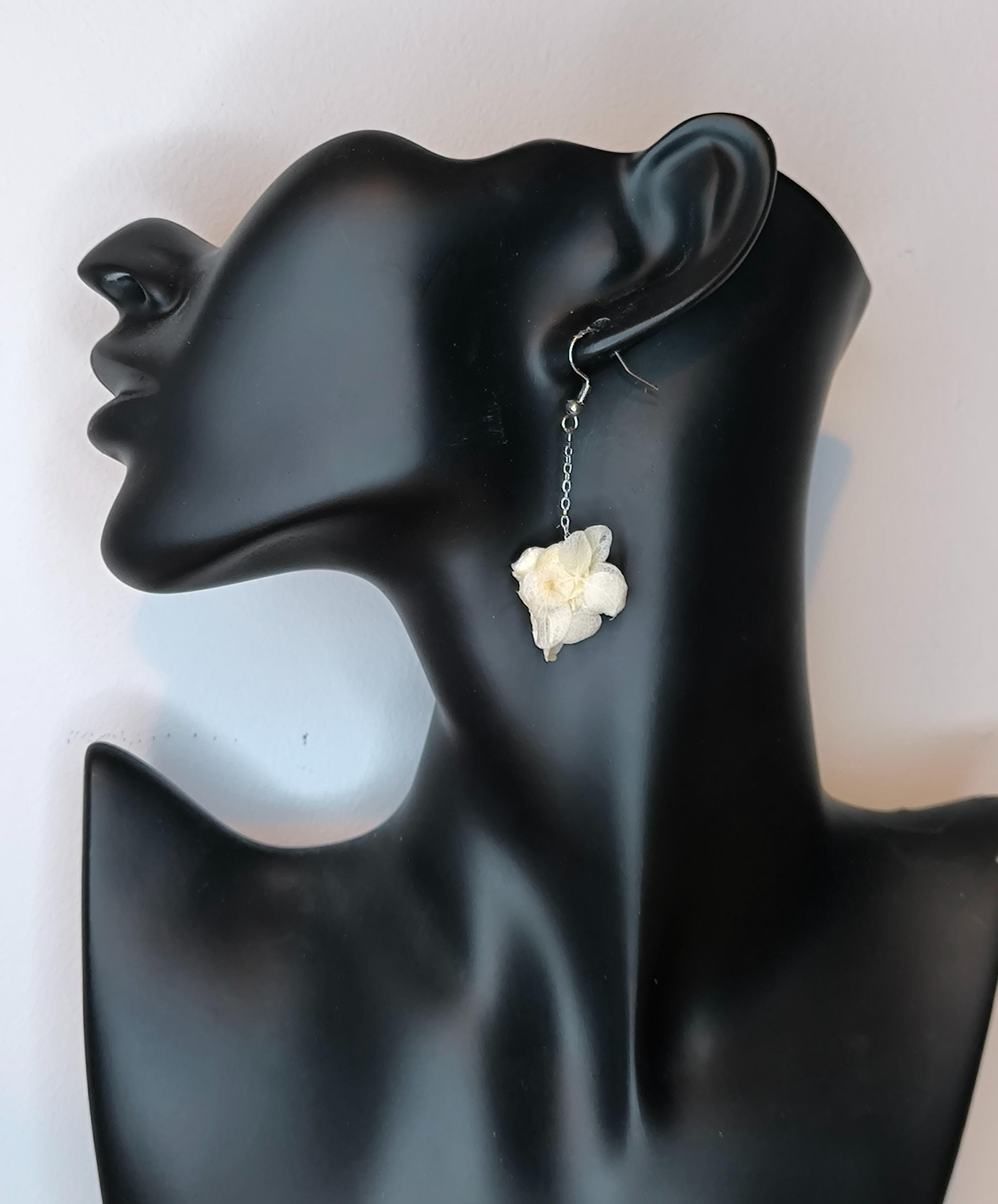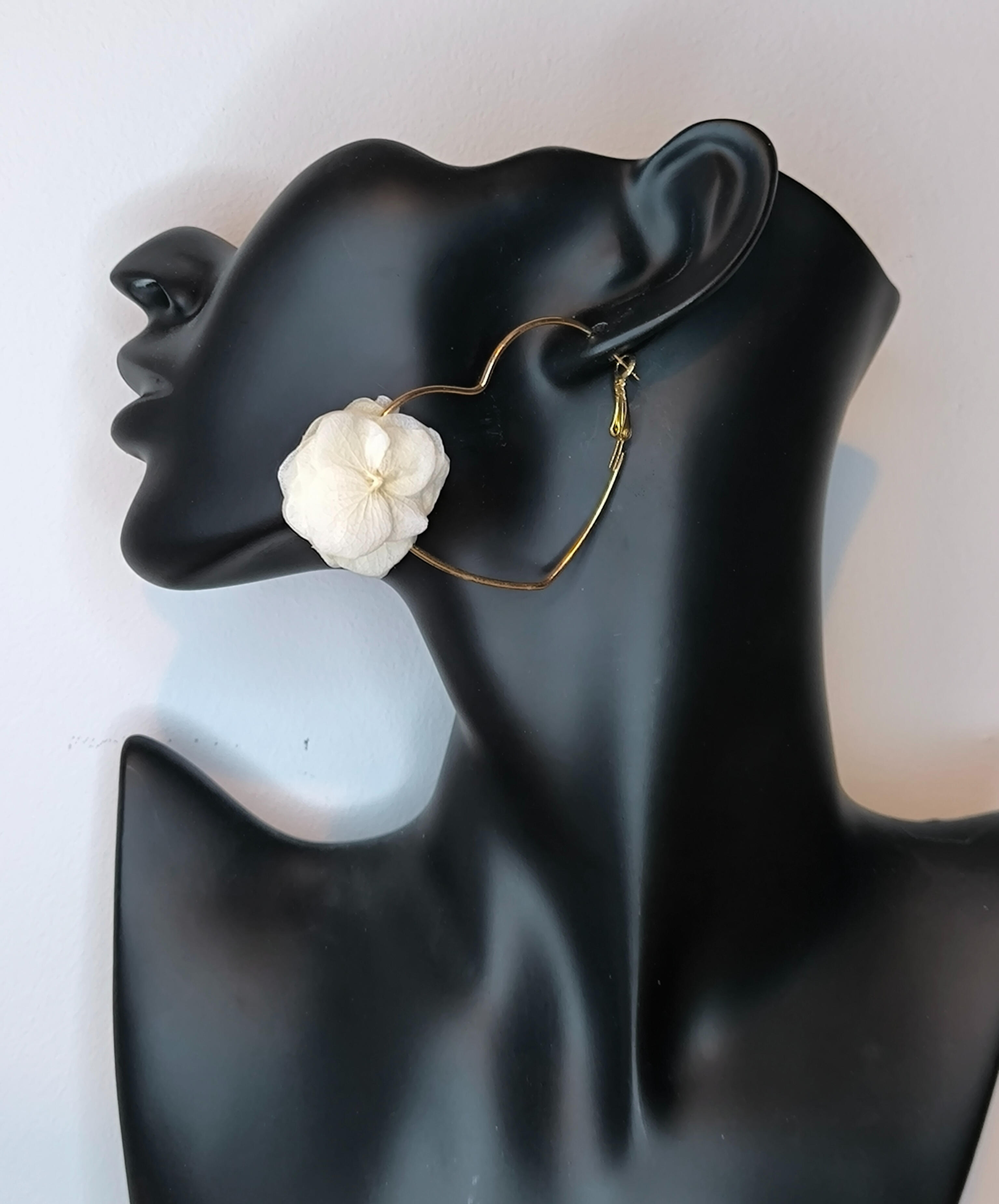 Sublimez votre visage avec nos boucles d'oreilles et colliers en fleurs éternelles. Véritables pièces artisanales, tous nos bijoux se déclinent dans les teintes de votre choix pour s'accorder parfaitement à votre bouquet ou à votre parure de tête.Chaque modèle est entièrement personnalisable : une harmonie unique créée à votre demande pour un cortège qui vous ressemble.